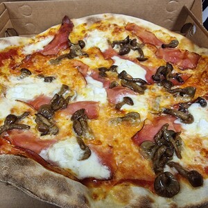 Pomodoro, Mozzarella, Tomino, Funghi Chiodini, Speck in cottura